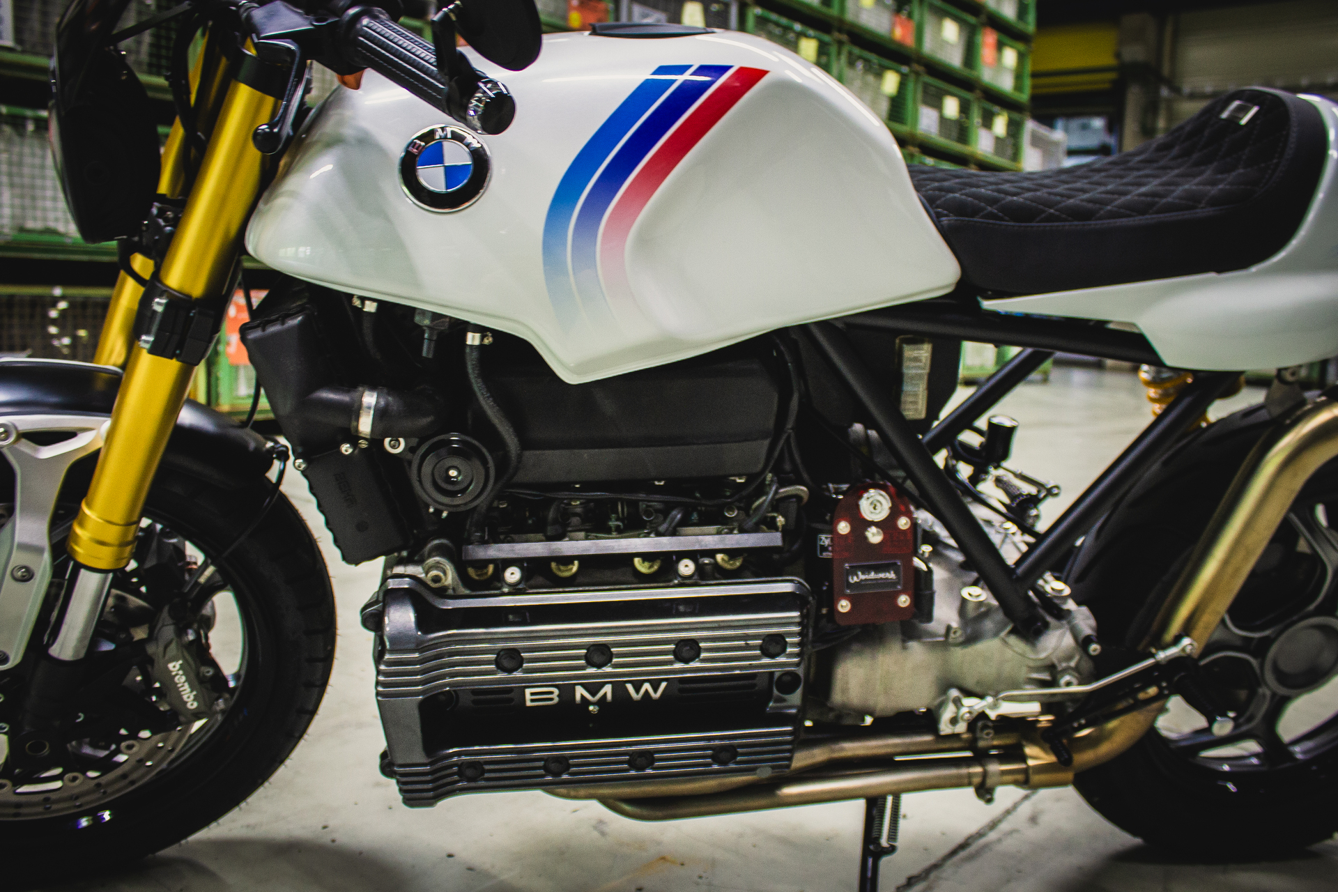 An der Front geht es weitaus moderner zur Sache. Hier verrichtet die Gabel einer Kawasaki Z1000 samt Bremse seinen Dienst und sorgt für ein modernes Feeling an der Front. Dies sind nur ein Bruchteil der Arbeiten und Details die ihr an dem Bike findet – viel Spaß beim entdecken!